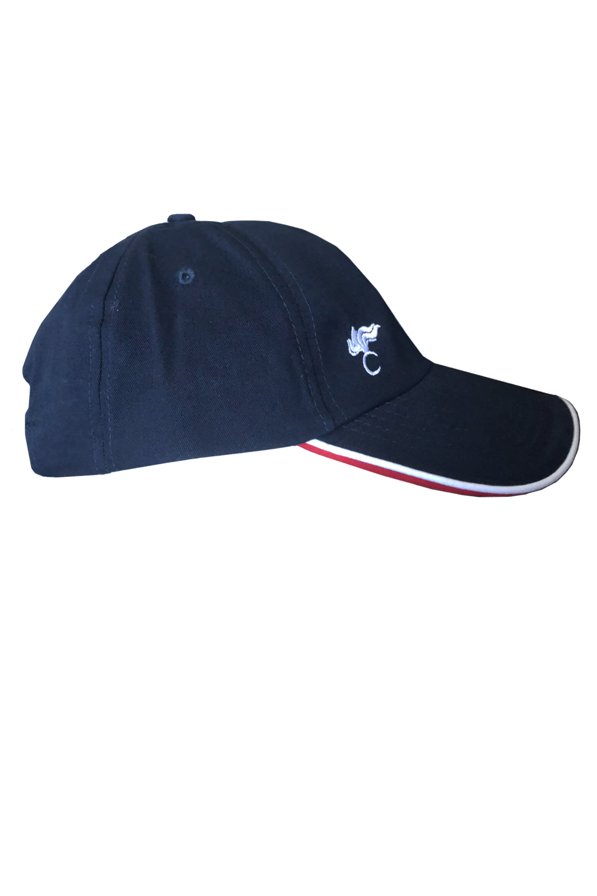 ICONIC CAPPELLO BLU CON PROFILI E RICAMO BIANCO - SOTTOVISIERA ROSSA - 100% COTONE - REGOLAZIONE IN METALLO