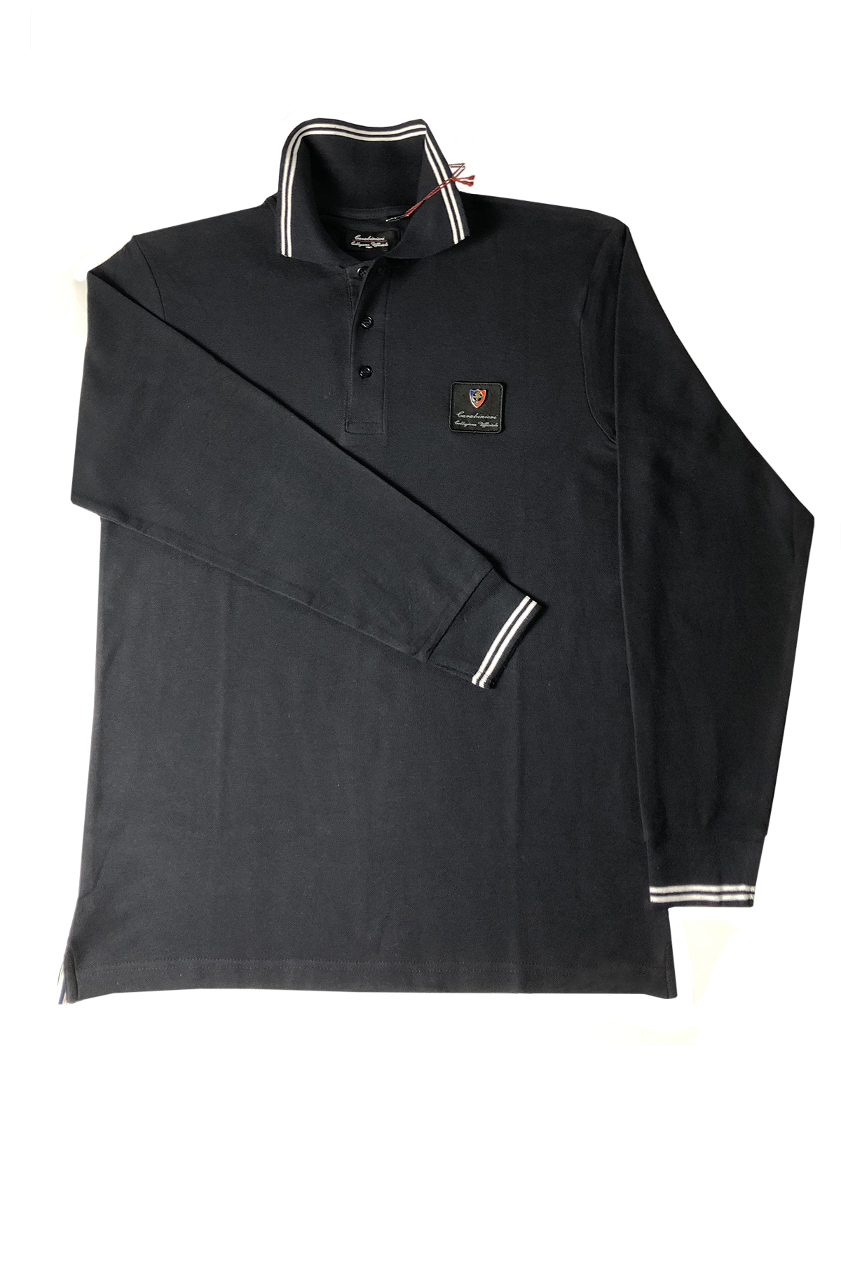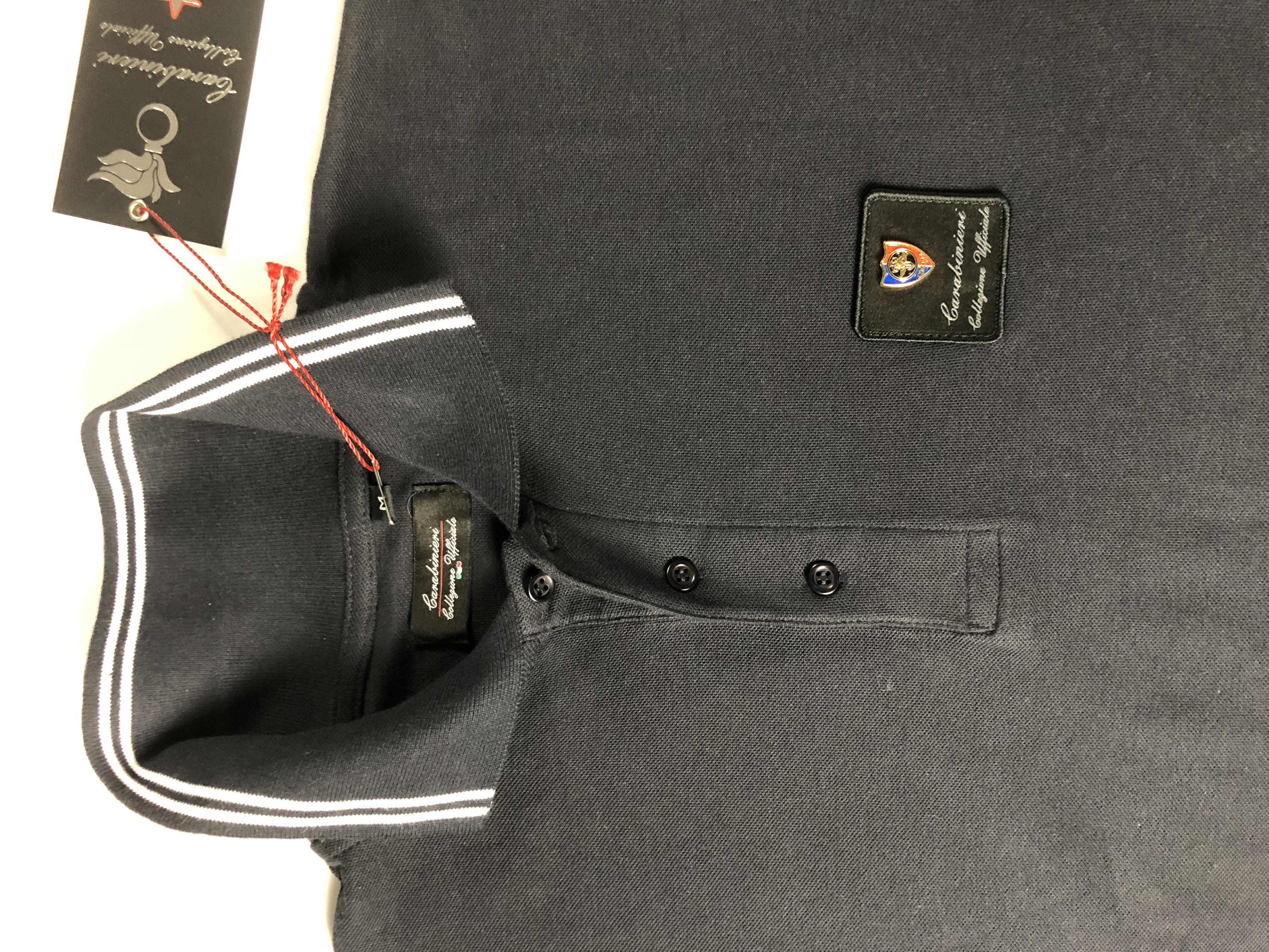La polo in piquet manica lunga colore BLU con profili bianchi. 100% cotone, spacchetti laterali con rinforzo nastro rigato. Patch a cuore con distintivo in metallo smaltato reparto GIS.