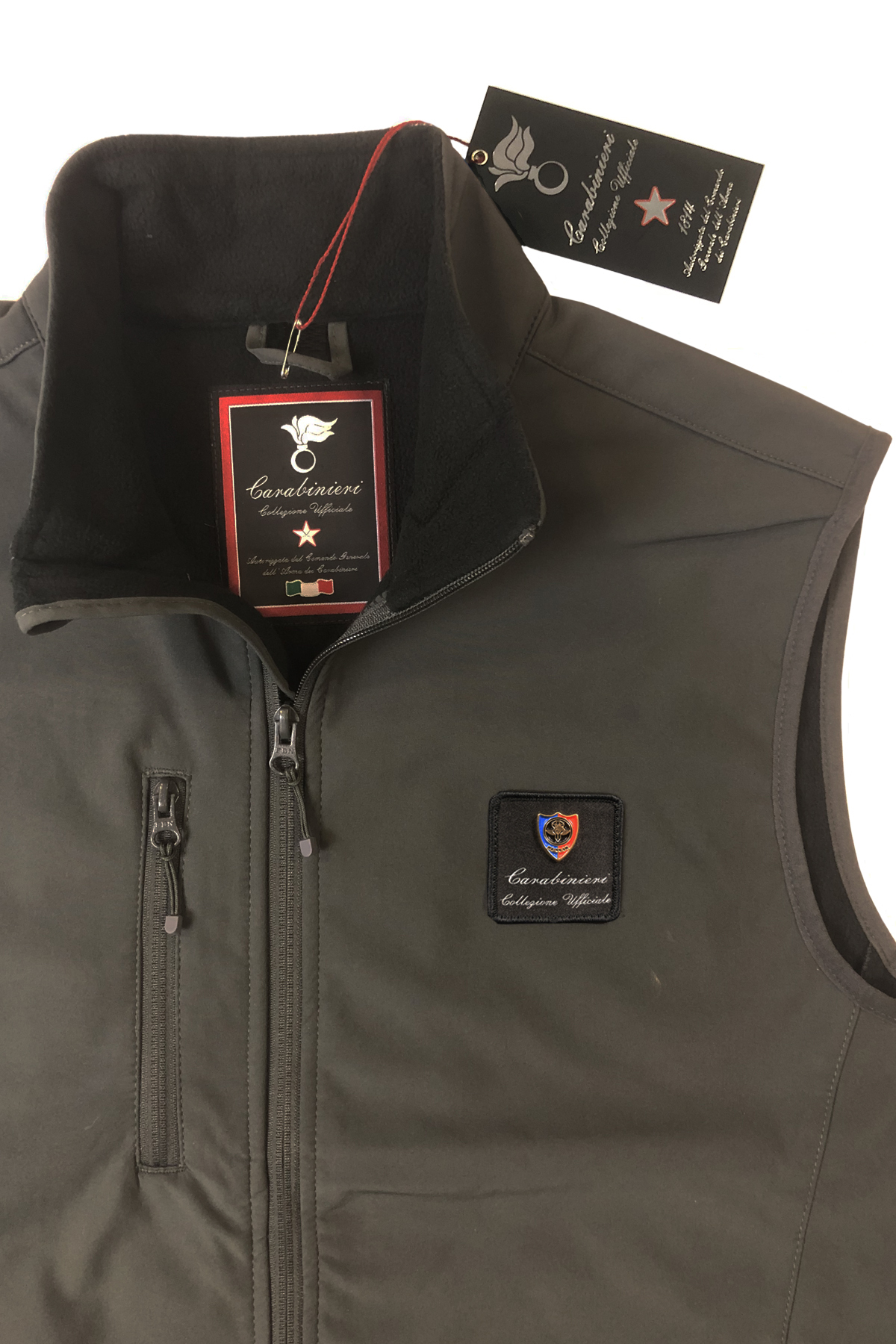 Il nuovo gilet grigio firmato Carabinieri Collezione Ufficiale in soft shell. 94% poliestere riciclato - 6% elastan 3 strati - Interno in pile: 100% poliestere Membrana 5000 mm impermeabile e traspirante. Fullzip - 2 tasche laterali e 1 tasca sul petto con zip. Zip in contrasto. Giromanica e fondo del capo con sbieco elasticizzato.